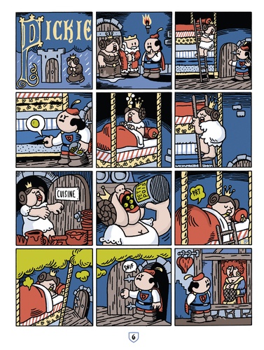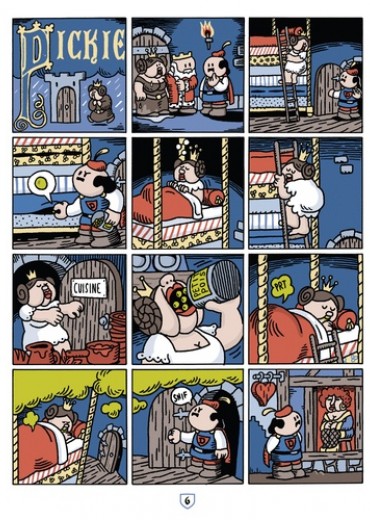 Il était une fois Dickie... Dickie est un prince (presque) charmant, sans peur et (presque) sans reproches. Ce n'est pas qu'il ait un mauvais fond ou qu'il y mette de la mauvaise volonté, mais à chaque fois qu'il se retrouve impliqué dans une aventure, ça finit mal. Il a comme qui dirait une fâcheuse tendance à saboter tout ce qu'il touche, et c'est encore plus drôle lorsqu'il s'agit de nos contes de fées préférés ! Oubliez la magie, Dickie c'est plutôt : une princesse qui se retrouve embrochée par sa licorne, un dragon qui fait des pets enflammés ou Pocahontas qui meurt d'une maladie contagieuse. Retrouvez tout cela et bien plus encore à travers une succession de gags muets dans lesquels le talentueux Pieter De Poortere distille un humour noir, décalé et délicieusement trash, qui n'est pas sans nous rappeler celui des gags visuels des Monty Python. Après l'Histoire avec Le fils d'Hitler, le cinéma avec Dickie à Hollywood et à peu près tout avec Le petit Dickie illustré, le petit bonhomme moustachu à tête de playmobil s'amuse cette fois-ci à revisiter les contes de notre enfance. Devenu un personnage culte de la collection 1000 Feuilles et de la BD d'humour déjantée, Dickie va même bientôt avoir sa propre série TV !