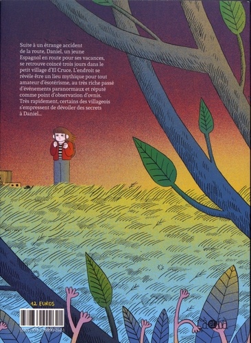 Suite à un étrange accident de route, Daniel - jeune espagnol passionnément curieux - se retrouve coincé trois jours dans le village d'El Cruce où abondent énigmes et événements inexplicables : des ombres noires, des messages menaçants, des kidnappings... Il s'avère qu'El Cruce est un endroit mythique pour tout amateur d'ésotérisme, au très riche passé d'événements paranormaux. Le bois à l'orée de la ville est d'ailleurs réputé comme point d'observation d'OVNI. Par chance - ou par malheur - quelques villageois semblent enclins à dévoiler certains secrets à Daniel. Il rencontre Marina, une jeune habitante de la ville et son frère Juan, obnubilé par les phénomènes paranormaux avec lesquels il va vivre une expérience extra-ordinaire et traumatisante. Chacun va réagir différemment à cet événement, déni pour Daniel, Marina va sombrer dans la foliée et Juan se suicidera. 20 ans plus tard, on retrouve Daniel en pleine interview avec une étudiante passionnée par les OVNI. L'étudiante s'attelle à son tour à mener l'enquête, au coeur du village d'El Cruce. Publié en 2017 en Espagne, Proches Rencontres a marqué les esprits. Le livre a été sélectionné pour le prix de la meilleure bande dessinée espagnole au festival de Barcelone 2017 et son autrice était en lice pour le Prix de la révélation 2017 du même festival.