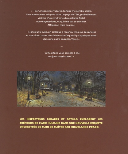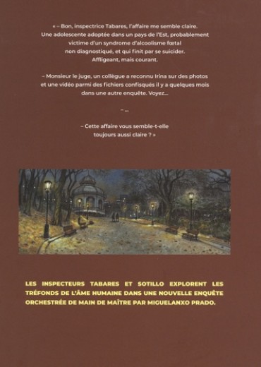 Février 2017, Irina, une adolescente de 15 ans, est retrouvée morte dans son lit. Les autorités concluent à un suicide, et l'affaire semble rapidement classifiée. L'inspectrice Tabares et son adjoint Sotillo sont en charge de l'affaire, mais ils ne sont cependant pas convaincus par cette théorie. Aussi, lorsqu'ils retrouvent dans la tablette de la jeune fille des photos d'elle nue et un lien avec un mystérieux photographe érotique, l'enquête prend soudainement une tournure glaçante. Miguelanxo Prado, après Proies faciles T1, revient avec un nouveau polar social froid et dur, réalisé avec toute la maestria qui le caractérise.
