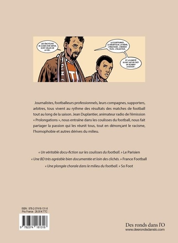 Journalistes, footballeurs professionnels, leurs compagnes, supporters, arbitres, tous vivent au rythme des résultats des matches de football tout au long de la saison. Jean Duplantier, animateur radio de l'émission "Prolongations", nous entraîne dans les coulisses du football, nous fait partager la passion qui les réunit tous, tout en dénonçant le racisme, l'homophobie et autres dérives du milieu.
