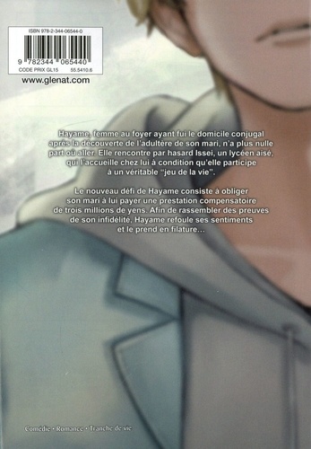 Hayame, femme au foyer ayant fui le domicile conjugal découverte de l'adultère de son mari, n'a plus nulle aller. Elle rencontre par hasard Issei, un lycéen aisé, qui l'accueille chez lui à condition qu'elle participe à un véritable "jeu de la vie". Le nouveau défi de Hayame consiste à obliger son mari à lui payer une prestation compensatoire de trois millions de yens. Afin de rassembler des preuves de son infidélité, Hayame refoule ses sentiments et le prend en filature...