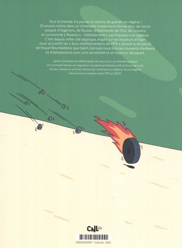 Tout le monde n'a pas eu la chance de grandir en Algérie ! Et encore moins dans un immeuble moderne en forme d'arc de cercle peuplé d'Algériens, de Russes, d'Allemands de l'Est, de Cubains et surnommée "Rwama" - littéralement "Les Français" en algérois. C'est depuis cette cité atypique, érigée sur les hauteurs d'Alger pour accueillir les "Jeux méditerranéens de 1975" durant la dictature de Houari Boumediéne, que Salim Zerrouki nous livre ses souvenirs d'enfance et d'adolescence avec une sensibilité et un humour décapant.