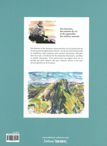 Les espaces naturels et les espaces protégés sont depuis le COVID de plus en plus fréquentés par un public souvent peu averti des règles et des fragilités des lieux qu'ils traversent. Pour permettre de préserver ces milieux naturels, des hommes et des femmes ont pour mission d'aller à la rencontre du public, de suivre l'évolution des populations de certaines espèces, d'entretenir les sentiers, de sensibiliser à l'environnement ou d'accompagner l'évolution des pratiques agricoles et sylvicoles. Parmi eux, certains et certaines sont dotés en plus de pouvoirs de police spécifiques aux domaine de la protection de l'environnement et s'assurent du respect des règles en la matière. Ces hommes et ces femmes travaillent en réserves naturelles, dans les parc nationaux, à l'office français de la biodiversité, à l'Office national des forêts ou dans les Conservatoires du littoral et appartiennent au corps de la police de l'environnement. Ces agents de terrain passionnés sont confrontés à la fois à la disparition de nombreuses espèces et aux incivilités ou à l'indifférence de certains. Ils sont également les témoins privilégiés d'une nature superbe qui tente de résister aux assauts de notre monde moderne qui tend à grignoter et s'accaparer les derniers fragments d'un monde "sauvage" . C'est leur vie et leur vision du monde que nous souhaitons transmettre au travers de cet ouvrage. Sous la forme d'histoires courtes en deux planches et de scènes de vie sur une planche, cette BD a pour but de mettre en image la réalité des métiers de la protection de l'environement, et notamment du corps de la "police de l'environnement", mais aussi l'amour et le respect qu'ont ces hommes et ces femmes pour les espaces sur lesquels ils veillent.