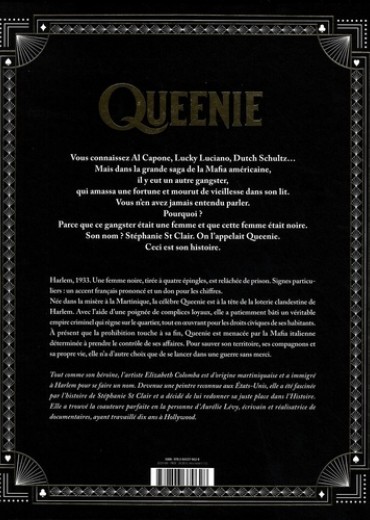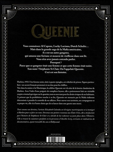 Vous connaissez Al Capone, Lucky Luciano, Dutch Schultz... Mais dans la grande saga de la Mafia américaine, il y eut un autre gangster, qui amassa une fortune et mourut de vieillesse dans son lit. Vous n'en avez jamais entendu parler. Pourquoi ? Parce que ce gangster était une femme et que cette femme était noire. Son nom ? Stéphanie St Clair. On l'appelait Queenie. Ceci est son histoire. Harlem,1933. Une femme noire, tirée à quatre épingles, est relichée de prison. Signes particuliers : un accent français prononcé et un don pour les chiffres. Née dans la misère à la Martinique, la célèbre Queenie est à la tête de la loterie clandestine de Harlem. Avec l'aide d'une poignée de complices loyaux, elle a patiemment bâti un véritable empire criminel qui règne sur le quartier, tout en ouvrant pour les droits civiques de ses habitants. A présent que la prohibition touche à sa fin, Queenie est menacée par la Mafia italienne déterminée à prendre le contrôle de ses affaires. Pour sauver son territoire, ses compagnons et sa propre vie, elle n'a d'autre choix que de se lancer dans une guerre sans merci.