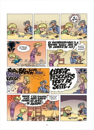 Trois générations sous le même toit, quelle joie ! Mais attention, ça peut aussi provoquer pas mal de dégâts ! Qu'il s'agisse d'une brouille entre Cédric et Pépé, aussi mauvais perdants l'un que l'autre, ou d'une dispute entre papa, le "marchand de carpettes", et Pépé, le "poseur de rails", maman sert toujours de tampon. Mais quand c'est elle qui s'énerve, tous aux abris ! Dans ce recueil plein de tendresse et d'humour, Laudec et Cauvin nous offrent leurs meilleurs gags sur la famille de Cédric, une tranche de rire au quotidien.