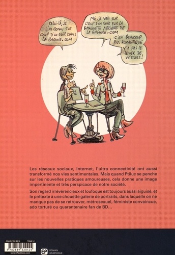 Les réseaux sociaux, Internet, l'ultra connectivité ont aussi transformé nos vies sentimentales. Mais quand Ptiluc se penche sur les nouvelles pratiques amoureuses, cela donne une image impertinente et très perspicace de notre société. Son regard irrévérencieux et loufoque est toujours aussi aiguisé, et le prétexte à une chouette galerie de portraits, dans laquelle on ne manque pas de se retrouver, métrosexuel, féministe convaincue, ado torturé ou quarantenaire fan de BD...