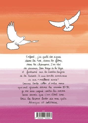 Enfant, j'ai guetté des signes dans la rue, dans les films, dans les chansons. J'ai rêvé de devenir Don Diego de la Vega et fantasmé sur les modèles lingerie de la Redoute. Je suis tombée amoureuse de ma " meilleure amie ". Comme toutes celles d'entre nous qui ont grandi dans les années 80-90, je me suis cognée contre la norme sans savoir que c'en était une. Voici les leçons tirées de ma quête héroïque et solitaire.
