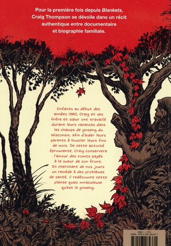 Enfants au début des années 1980, Craig, son frère Phil et sa soeur Sarah ont travaillé toutes leurs vacances dans les champs de ginseng du Wisconsin, afin d'aider leurs parents à joindre les deux bouts. De cette activité éprouvante, Craig a conservé l'amour des comics achetés avec l'argent gagné à la sueur de son front et des soucis de santé probablement causés par les pesticides massivement employés dans l'agriculture intensive. C'est en cherchant de nos jours un remède en médecine douce à ses problèmes qu'il en est venu à se pencher sur cette plante quasi miraculeuse, le ginseng. Entre documentaire et biographie familiale, le middle west et la Chine, une enquête qu'on dévore avec passion.