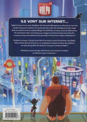 Ralph la Casse et son amie Vanellope Von Schweetz débarquent sur internet, un nouveau monde immense et excitant, à la recherche d'un volant de rechange pour le jeu Sugar Rush. Ils y découvrent les embouteillages, les publicités et toutes sortes de distractions. Ils vont devoir rester concentrés pour naviguer sur internet et parvenir à leur fin. Le parcours que vous choisirez leur permettra-t-il d'arriver à temps à destination ? Pendant ce temps, à Litwak, le jeu Félix Fixe Junior ne peut fonctionner sans Ralph. Félix et Gene doivent lui trouver un remplaçant et organisent donc des auditions aux pays des gentils. Qui choisirez-vous pour remplacer Ralph ? Choisissez un personnage, sélectionnez une aventure et cliquez sur démarrer pour commencer !