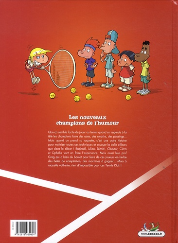 Que ça semble facile de jouer au tennis quand on regarde à la télé les champions faire des aces, des smashs, des passings... Mais quand on prend sa raquette, c'est une autre histoire pour maîtriser toutes ces techniques et envoyer la balle ailleurs que dans le décor ! Raphaël, Julien, Dimitri, Clément, Clara et Ophélie vont en faire l'expérience. Mais aussi leur prof Greg qui a bien du boulot pour faire de ces joueurs en herbe des bêtes de compétition, des machines à gagner... Mais à raquette vaillante, rien d'impossible pour ces Tennis Kids.