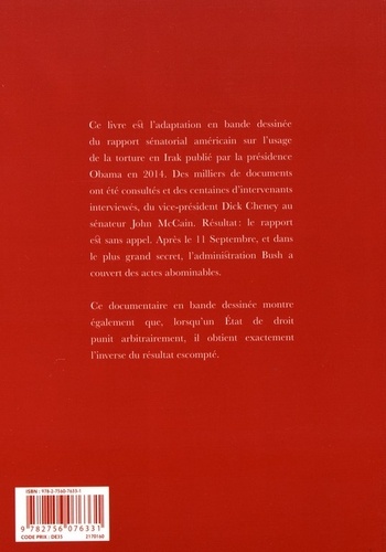 Une adaptation en BD du rapport sénatorial américain sur l'usage de la torture en Irak, où l'on s'aperçoit notamment que l'administration Bush a couvert ces pratiques. Un documentaire édifiant. Dès son arrivée au pouvoir, le président Barack Obama demanda au Sénat américain d'enquêter sur la torture pratiquée par la CIA en Irak. Des milliers de documents sont consultés et des centaines d'agents et d'intervenants interviewés. Le rapport est sans appel. Après le 11-Septembre et dans le plus grand secret, l'administration Bush a couvert des actes abominables. Ce livre est l'adaptation en bande dessinée de ce rapport.