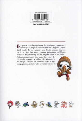 La guerre pour la suprématie des ténèbres a commencé ! Alors que la brigade Doryu s'allie aux Onigami, Demon Card renaît de ses cendres avec Lucia comme nouveau roi à sa tête. Les deux grandes puissances maléfiques occupent Southernberg, où se dirigent Haru et ses amis... Malencontreusement pris dans les feux de ce conflit explosif, le village de Mildesta a été ravagé. Témoins du désastre, Haru et ses compagnons décident d'aller sauver ses sirènes !!
