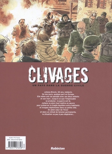 Juliana Brovic. Médecin. Quelque part en Europe. Elle mène une vie paisible avec ses deux enfants et son mari. Jusqu'à ce que l'impensable se produise : la guerre est là. Juliana va alors tout mettre en oeuvre pour préserver le fragile équilibre entre habitants et troupes légitimistes dans sa petite ville. Mais, la situation va peu à peu dégénérer... Le scénariste Sylvain Runberg, passionné d'histoire et de bande dessinée, s'attaque aujourd'hui à un sujet aussi choc qu'actuel : la guerre civile. Grâce au talent du dessinateur Joan Urgell, le thème de la guerre est revisité avec beaucoup d'humanité sous le prisme des valeurs et des relations humaines au sein d'un village frappé par la catastrophe.