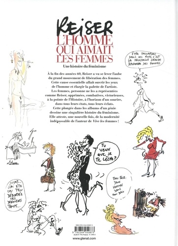 L'hommage à un grand. La célébration d'une cause. Féministe avant l'heure, Reiser a, dans ses multiples dessins et albums, magnifié et pris le parti des femmes. Abordant d'innombrables sujets résonnants encore et toujours avec notre actualité (la liberté sexuelle, la maternité, le viol, l'avortement, le divorce, les violences conjugales, l'égalité hommes-femmes, etc.), il n'a jamais cessé de soutenir la cause féministe avec l'immense talent qu'on lui connaît. Dans le présent ouvrage, retrouvez une anthologie de ses dessins, introduite par un texte de son biographe - Jean-Marc Parisis - et complétée de témoignages de personnalités féminines ayant côtoyé l'artiste ou en phase avec lui... Parce qu'il est aussi et à jamais l'un des plus grands, les Editions Glénat souhaitent rendre hommage à son trait unique et libre... Reiser ne finira jamais d'inspirer et les 250 pages de cet ouvrage constituent autant une parcelle d'Histoire qu'un témoignage de l'amour et du respect qu'il portait aux femmes.