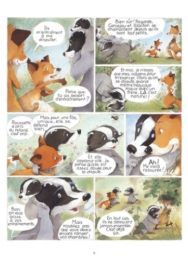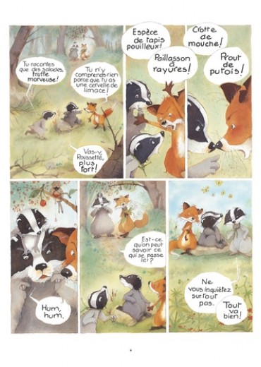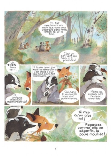 Tout allait pour le mieux dans le meilleur des terriers. Monsieur Blaireau et Madame Renarde, privés de leurs conjoints, avaient uni leurs amours et leur turbulente progéniture au sein d'une joyeuse famille bricolée. Parée pour le bonheur. Las, c'était compter sans les aléas de la vie forestière et filiale. Le gros chagrin de Roussette, la petite Renarde, blessée l'entendre sa "vraie" maman câliner ses blaireaux de "frères et soeur" . Les taquins matous du village qui s'emparent de leur cabane secrète et perchée. Et, surtout, le retour inopiné de papa Renard... Sacré remue-ménage en effet. Quel délice de se plonger dans ce doux terrier-là. Ca fleure bon la vie, l'amour, la délicatesse, les jeux, les colères d'enfants et les petites angoisses légitimes. Sans mièvrerie aucune. En deux Tomes, Brigitte Luciani et Eve Tharlet ont réussi à imposer une couleur, une musique singulière : à mi-chemin entre le livre de jeunesse et la bande dessinée - un court récit de 32 pages, à l'aquarelle. En privilégiant le point de vue des enfants, elles évoquent avec finesse et pudeur une situation familiale en apparence pas idéale : la famille recomposée. Mais qui, c'est ce qu'elles nous disent si joliment, est un vivier de surprises quotidiennes et de richesses renouvelées. A mettre entre toutes les petites mains, à partir de 5 ans. Chaque tome de la série sera dorénavant proposé à partir de 2026 en version souple à plus petit format (195 x 260) avec un bonus de huit pages supplémentaires (jeux, cahier didactique...). Le tout à petit prix !