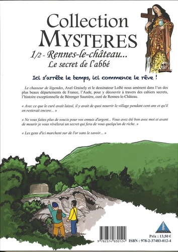 Le chasseur de légendes, Axel Graisely et le dessinateur Lobé, nous amènent dans l'un des plus beaux départements de France, l'Aude, pour y découvrir à travers des cahiers secrets, l'histoire exceptionnelle de Bérenger Saunière, curé de Rennes-le-Château. "Avec ce que le curé avait laissé, il y avait de quoi nourrir le village pendant cent ans et qu'il en resterait encore . . ". "Ne vous faîtes plus de soucis pour vos ennuis d'argent ... . Vous avez été bon avec moi et avant de mourir je vous révèlerai un secret qui fera de vous quelqu'un de riche". "Les gens d'ici marchent sur de l'or sans le savoir . . ".