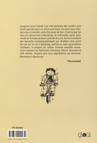 Tita Larasati est née 1972 à Jakarta, mais elle a fait ses études dans la petite ville de Bandung qui devient sa ville d'adoption. Diplômée d'une école d'ingénieur, elle part ensuite faire un doctorat aux Pays-Bas en 1998. Elle passera finalement neuf ans dans ce pays où elle se mariera avec un Hollandais et mettra au monde deux enfants. En 2007, Tita décide de revenir vivre à Bandung avec sa petite famille... C'est ce retour dans son pays et dans la ville de sa jeunesse qu'elle décrit dans Retour à Bandung, avec un regard à la fois occidental et indonésien, les petits riens du quotidien, la nourriture, les problèmes de circulation, le déphasage de ses enfants... Tita fait preuve de beaucoup d'humour, de poésie et de légèreté même dans les moments graves.