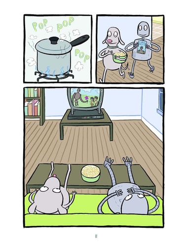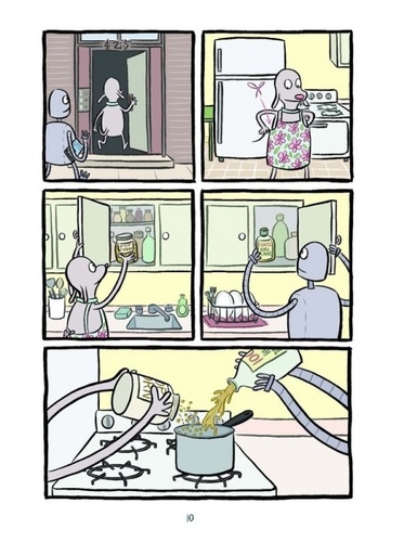 Le Chien et le Robot sont les meilleurs amis du monde depuis peu. Un beau jour, ils décident d'aller à la plage. Mais à la fin de la journée de baignade et de jeux, le Robot est tout rouillé et complètement paralysé ! Son ami, ne sachant pas quoi faire, finit par l'abandonner et rentrer chez lui. Alors que les saisons passent, le Chien essaie de trouver de nouveaux amis, avec plus ou moins de succès, tandis que le Robot n'a d'autre choix que de rêver et d'imaginer de meilleures situations... Les adorables personnages et le charme immense du récit de Sara Varon enthousiasmeront les jeunes lecteurs à coup sûr. Leurs parents et les outres succomberont tout autant à ce charme, et en profiteront aussi pour méditer sur la fragilité et la perte de l'amitié. Un formidable album de plus de 200 poses pour tous les âges !