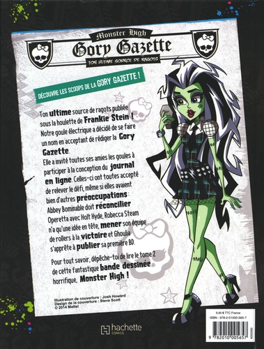 Ton ultime source de ragots publiée sous la houlette de Frankie Stein ! Notre goule électrique a décidé de se faire un nom en acceptant de rédiger la Glory Gazette. Elle a invité toutes ses amies les goules à participer à la conception du journal en ligne. Celles-ci ont toutes accepté de relever le défi, même si elles avaient bien d'autres préoccupations : Abbey Bominable doit réconcilier Operetta avec Holt Hyde, Robecca Steam n'a qu'une idée en tête, mener son équipe de rollers à la victoire et Ghoulia s'apprete à publier sa première BD. Pour tout savoir, dépêche toi de lire le tome 2 de cette fantastique bande dessinée horrifique, Monster High !