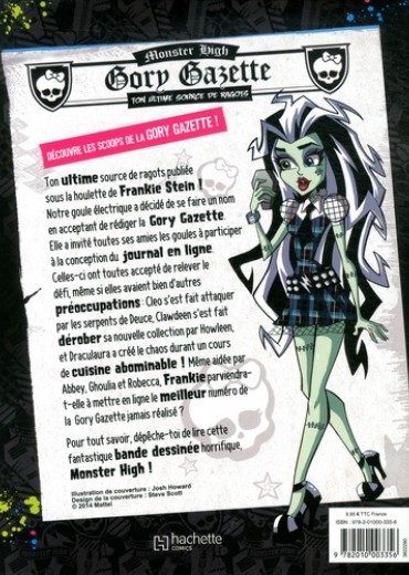 Elles s'appellent Frankie Stein, Clawdeen Wolf et Draculaura . Elles sont gothiques, fashion et modernes, on les surnomme "les goules". Leurs parents sont les célèbres, Frankenstein, Loup Garou et Dracula. Cette 1ère BD "Monster High" est l'occasion rêvée de retrouver l'univers des fabuleuses poupées gothiques et glamours qui depuis 2011 font craquer les petites filles .