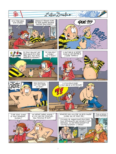 Dans ce nouvel album, Ducobu donne le meilleur de lui-même pour conserver le titre d’Empereur des tricheurs et faire contre mauvaise fortune bons points. S’il ne sait toujours pas combien font 6 x7, il ne manque pas d’intelligence ni d’un sens personnel et aiguisé de la rhétorique pour déstabiliser ce bon vieux Latouche qui en perdrait presque son latin, Latouche qui semble d’autant plus troublé du fait de la présence à Saint-Potache de sa fragile collègue Mademoiselle Rateau.