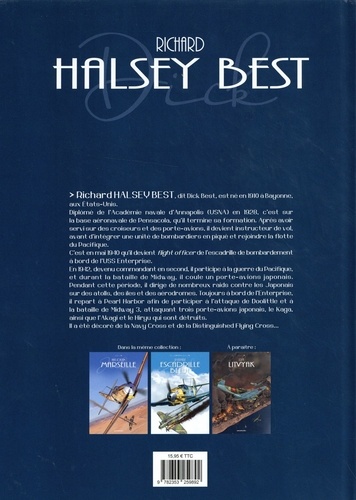 Richard Halsey Best, dit Dick Met, est né en 1910 à Bayonne. aux Etats-Unis. Diplômé de l'Académie navale d'Annapolis (USNA) en 1928. c'est sur la base aéronavale de Pensacola. qu'il termine sa formation. Après avoir servi sur des croiseurs et des porte-avions. il devient instructeur de vol. avant d'intégrer une unité de bombardiers en piqué et rejoindre la flotte du Pacifique. C'est en mai 1940 qu'il devient flight officer de l'escadrille de bombardement à bord de l'USS Enterprise. En 1942. devenu commandant en second. il participe à la guerre du Pacifique. et durant la bataille de Midway. il coule un porte-avions japonais. Pendant cette période. il dirige de nombreux raids contre les Japonais sur des atolls. des iles et des aérodromes. Toujours abord de l'Enterprise. il repart à Pearl Harbor afin de participer à l'attaque de Doolittle et à la bataille de Midway 3. attaquant trois porte-avions japonais. le',aga. ainsi que l'Akagi et le Hiryu qui sont détruits. Il a été décoré de la Navy Cross et de la Distinguished Flying Cross...