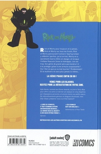 Rick et Morty pour toujours et à jamais. Rick et Morty sur tous tes fronts, Rick et Morty parcourant l'univers ! Sauf qu'à bien y réfléchir (parfois, ça lui arrive), Morty en a sacrément marre d'être en danger, et lorsque l'infâme Peacock Jones le kidnappe, c'en est trop. Son génie de grand-père parviendra-t-il a le protéger grâce à une armure surpuissante ? Oui ! Est-ce que ça va mal tourner ? Evidemment ! Et le multivers ne sera plus jamais le même...