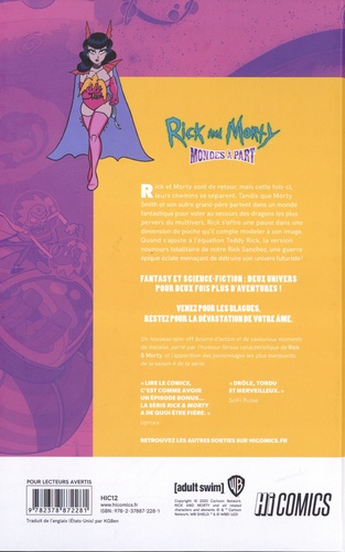 Rick et Morty sont de retour, mais cette fois-ci, leurs chemins se séparent. Tandis que Morty Smith et son autre grand-père partent dans un monde fantastique pour voler au secours de la bande de dragons la plus perverse du multivers, Rick s'offre une pause dans une dimension de poche qu'il compte modeler à son image. Quand s'ajoute à l'équation Teddy Rick, la version nounours totalitaire de notre Rick Sanchez, une guerre épique éclate menaçant de détruire cet univers futuriste ! Fantasy et science-fiction : deux univers pour deux fois plus d'aventures ! Venez pour les blagues, restez pour la dévastation de votre âme. Un nouveau spin-off bourré d'action et de savoureux moments de malaise, porté par l'humour féroce caractéristique de Rick & Morty, et l'apparition des personnages les plus marquants de la saison 4 de la série. " Lire le comics, c'est comme avoir un épisode bonus... La série Rick & Morty a de quoi être fière ! " Uproxx