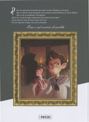 Ashley et Joyce Ravencroft ont perdu leurs parents, archéologues, dans un accident d'avion. Après l'enterrement, les deux enfants sont accueillis chez oncle Marcus et tante Zelda. Mais ils sont un peu bizarres : Marcus, pianiste échoué, écrit une symphonie qu'il tente de se rappeler en sommeil depuis des années ; Zelda est quant à elle une fana de gym et de traitements de beauté. Un beau jour arrive un gros colis contenant cinq statuettes, envoyé par les parents d'Ashley et Joyce, quelques jours avant leur mort. Un petit billet, écrit par leur maman, dit simplement : chaque chose à sa place. C'est le début d'une aventure qui amènera les deux enfants à la découverte d'un mystère obscur et effrayant.