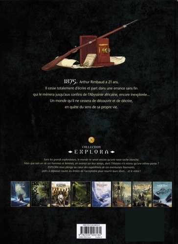On connait Rimbaud le poète. Mais ce que l'on sait moins, c'est qu'à l'âge de 29 ans, il partit seul étudier une région dangereuse et inexplorée de l'Ethiopie. Ce travail fut publié par la Société de Géographie française. C'est sur les traces de ce Rimbaud « l'explorateur » que part Valentin Bracq, son ami d'enfance. En 1892, il arrive à Harrar dans l'ancienne maison de l'auteur. Rimbaud est déjà mort de la gangrène. Valentin va alors mener une véritable enquête, et revivre le voyage de son ami en Abyssinie comme si c'était le sien.Grâce à la collection "Explora", découvrez une autre facette de l'un des plus grands auteurs français : Rimbaud, l'explorateur maudit. Celui dont, toute sa vie durant, le goût du voyage accompagnera une œuvre tourmentée et flamboyante.
