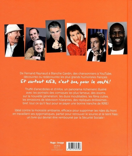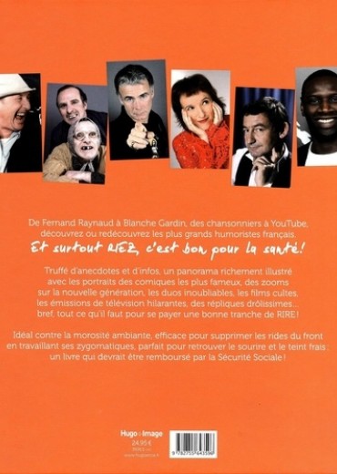 De Fernand Raynaud à Blanche Gardin, des chansonniers à YouTube, découvrez ou redécouvrez les plus grands humoristes français. Et surtout riez, c'est bon pour la santé ! Truffé d'anecdotes et d'infos, un panorama richement illustré avec les portraits des comiques les plus fameux, des zooms sur la nouvelle génération, les duos inoubliables, les films cultes, les émissions de télévision hilarantes, des répliques drôlissimes... bref, tout ce qu'il faut pour se payer une bonne tranche de rire ! Idéal contre la morosité ambiante, efficace pour supprimer les rides du front en travaillant ses zygomatiques, parfait pour retrouver le sourire et le teint frais : un livre qui devrait être remboursé par la Sécurité Sociale !