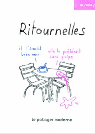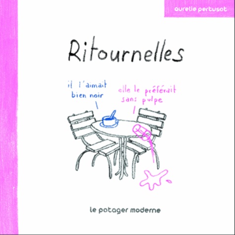 Ritournelles, c'est l'empreinte d'une vie, les souvenirs croisés de deux individus avant et après leur rencontre, puis les traces laissées sur un chemin qu'ils ont parcouru ensemble. Aurélie Pertusot a choisi ici un style de narration singulier, en ne montrant jamais les personnages mais en donnant la parole aux objets qui ont traversé leur vie. L'histoire se dessine alors, par petites touches, en faisant écho à l'intime de chaque lecteur.