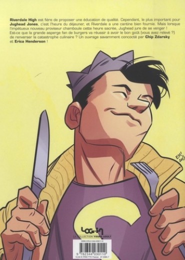 Son royaume pour un burger ! Réputé pour offrir une éducation de qualité, le lycée de Riverdale peut être fier de sa réputation. Jughead Jones, davantage connu pour les capacités de son estomac, y voit plutôt le lieu idéal pour savourer de délicieux repas. Mais lorsque sa sacro-sainte pause déjeuner est interrompue par un nouveau directeur impétueux, Jughead jure qu'il obtiendra vengeance ! Notre amoureux des burgers sera-t-il capable de n'en faire qu'une bouchée ? Jughead, le meilleur pote d'Archie, arrive sur le devant de la scène dans cette nouvelle série issue de l'univers de " New Riverdale " et scénarisée par l'inénarrable Chip Zdarsky (Sex Criminals). Dessinée avec énergie par Erica Henderson, Jughead réussit, à l'instar de ses séries soeurs, le tour de force de relancer un classique du comics tout en captant brillamment notre époque.