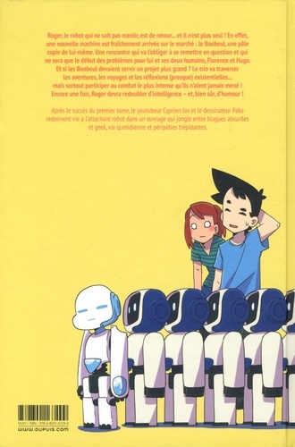 Roger, le robot qui ne sait pas mentir, est de retour... et il n'est plus seul ! En effet, une nouvelle machine est fraîchement arrivée sur le marché : le Boobeul, une pâle copie de lui-même. Une rencontre qui va l'obliger à se remettre en question et qui ne sera que le début des problèmes pour lui et ses deux humains, Florence et Hugo. Et si les Boobeul devaient servir un projet plus grand ? Le trio va traverser les aventures, les voyages et les réflexions (presque) existentielles... mais surtout participer au combat le plus intense qu'ils n'aient jamais mené ! Encore une fois, Roger devra redoubler d'intelligence - et, bien sûr, d'humour !