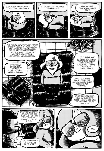 Lors d'une séance de psychanalyse, un test de Rorschach projette le personnage central de cette histoire face à ses démons intérieurs... et les choses tournent rapidement à l’aigre. Ce test marche visiblement trop bien sur le “patient” et nous voilà projeté à sa suite dans sa lutte avec son passé, ses phobies, ses zones d'ombre... La thérapie tourne au “survivor”. Parfois hilarant mais parfois pas du tout, grouillant d'inventivité graphiques et de speed narratif, ensevelissant certaines pages sous des avalanches de détails, de clin d’oeil, L’auteur part d’un bouillonnement de pensées pour nous entraîner au fil du récit vers plus de calme mais pas forcément plus d’optimisme ou de raison.