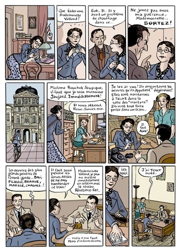 A Paris, dès le début de l'Occupation allemande, Rose Valland, attachée de conservation au musée du Jeu de Paume, recense dans le plus grand secret les oeuvres d'art volées aux membres de la communauté juive. Les chefs-d'oeuvre attendent dans ce musée, autrefois dédié à la peinture d'avant-garde, d'être acheminés vers l'Allemagne. En 1945, avant même la capitulation Rose Valland, devenue " capitaine beaux-arts ", part sur leurs traces, pour tenter de reconstituer le patrimoine artistique français. Rose Valland est une figure emblématique de l'histoire de la récupération artistique de l'immédiat après-guerre. Son incroyable travail renseigne encore aujourd'hui les historiens et les juristes des commissions de restitution et d'indemnisation des victimes de spoliation de la Seconde Guerre mondiale. La première partie de l'album retrace en bande dessinée la vie de Rose Valland, la seconde partie est une chronologie détaillée et illustrée de photographies et de documents originaux.
