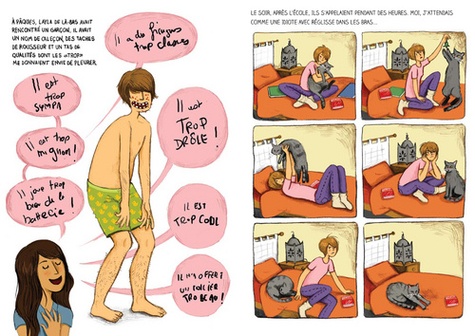 Rouge Tagada Elle s'appelle Layla. C'est la rentrée, elle est nouvelle et elle est seule. Seule ? Pas tout à fait, car Alex l'a remarquée. Mais comment l'aborder ? Sur le trajet du collège ? En cours ? A la récré ? Au théâtre ? Qu'importe ! La rencontre est inévitable. Entre elles naît une solide amitié. Et même plus que ça. Les auteures, Charlotte Bousquet et Stéphanie Rubini Charlotte Bousquet est l'auteure d'une vingtaine de romans pour adultes et adolescents, dans des genres aussi différents que le roman historique, le thriller, ou la fantasy. Stéphanie Rubini est illustratrice pour l'édition et la presse jeunesse, ainsi que pour le magazine Causette. Elles se sont rencontrées autour de Précieuses, pas ridicules, leur premier abécédaire. Enfant, Stéphanie Rubini avait un goût prononcé pour les nounours en guimauve. Charlotte Bousquet préférait les bonbons au réglisse. C'est pour se mettre d'accord qu'en se lançant dans un roman graphique - encore une première fois - elles ont décidé de l'appeler. Rouge tagada !