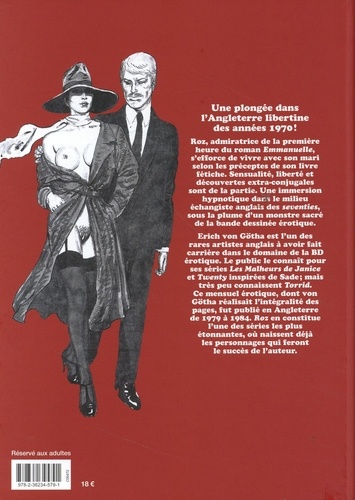 Une plongée dans l'Angleterre libertine des années 1970 ! Roz, admiratrice de la première heure du roman Emmanuelle, s'efforce de vivre avec son mari selon les préceptes de son livre fétiche. Sensualité, liberté et découvertes extra-conjugales sont de la partie. Une immersion hypnotique dans le milieu échangiste anglais des seventies, sous la plume d'un monstre sacré de la bande dessinée érotique.