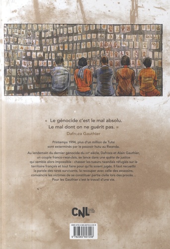 "Depuis 1994, il n'est pas un jour où nous n'avons pas prononcé le mot 'génocide'" Dafroza et Alain Gauthier Rwanda, à la poursuite des génocidaires raconte le travail d'enquête d'Alain et Dafroza Gauthier qui traquent depuis plus de 20 ans les génocidaires rwandais cachés en France. Les proches de Dafroza ont été décimés en 1994 alors qu'elle vivait à Reims avec son mari et ses 3 enfants. Le couple a rapidement réalisé que des tueurs avaient trouvé refuge en France et a décidé de tout faire pour que la justice soit rendue. Plusieurs fois par an, Alain et Dafroza se rendent au Rwanda pour récolter des preuves et des témoignages permettant d'ouvrir des informations judiciaires menant, en principe, à des procès. Mais ils rencontrent des obstacles innombrables : la lenteur de la justice, les hésitations politiques, les menaces, l'épuisement. Cet album, à travers leur histoire, permet de comprendre non seulement le déroulé du génocide, sa préparation, sa mise en place, mais aussi de prendre conscience de l'injustice française : alors que l'on estime qu'entre 200 et 400 génocidaires présumés vivraient sur notre sol, la France refuse de les extrader vers le Rwanda tout en mettant des années, parfois des dizaines d'années, à les juger elle-même. Cet album est avant tout une histoire humaine. Celle d'un couple ordinaire Dafroza et Alain Gauthier qui a décidé de consacrer toute sa vie et toute son énergie à la lutte pour la justice. Alain le dit lui-même : "depuis 1994, il n'est pas un jour où nous n'avons pas prononcé le mot 'génocide''