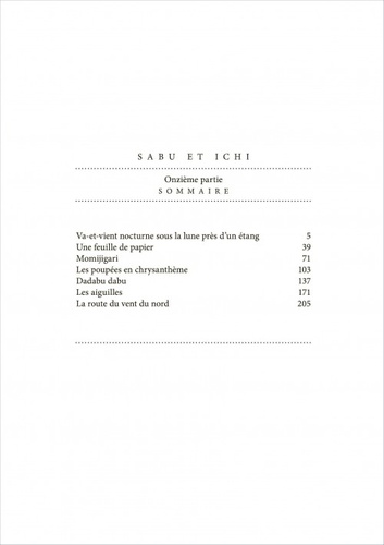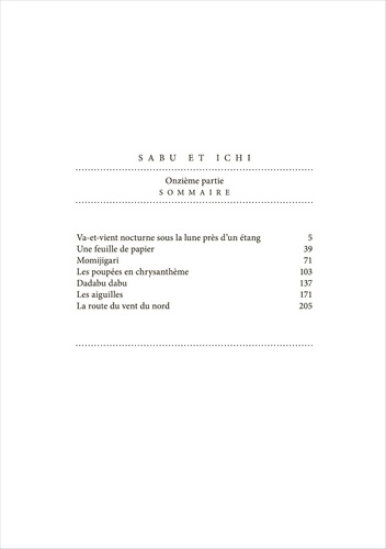 Sabu est un jeune garçon de course au service de l'Etat. Il vit avec Ichi, un masseur aveugle qui manie le sabre avec une grande adresse. Ensemble, ils vont veiller sur leur province et protéger la population. Ces petites histoires sont remplies d'aventures et pimentées d'humour.