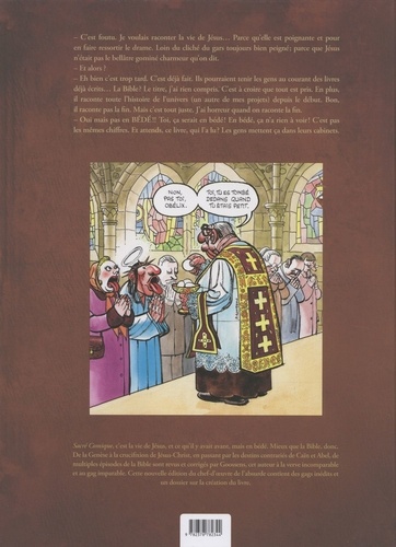 Rions un peu avec Jésus : Georges et Louis réécrivent la Bible, en BD, avec leurs regards de blaireaux ordinaires contemporains. Un recueil d'historiettes hilarantes, pour se moquer subtilement du mythe chrétien. Comment Jésus a-t-il choisi les douze salopards qui l'accompagneront ? "Jésus" , c'est un pseudo ou c'est son vrai nom ? Au célèbre journal DAILY BIBLE, ce fainéant de Clark Kent est envoyé pour faire un reportage sur la crucifixion de notre ami. Superman empêchera-t-il les méchants Romains de clouer Jésus comme un vulgaire papillon ? Toutes ces réponses et plein d'autres, notre ami Daniel Goossens les possède, naturellement. Dans cet ouvrage tout empreint de sacré, il vous livre ses théories sur Moïse, Adam et Eve, Dieu himself (et son call center)