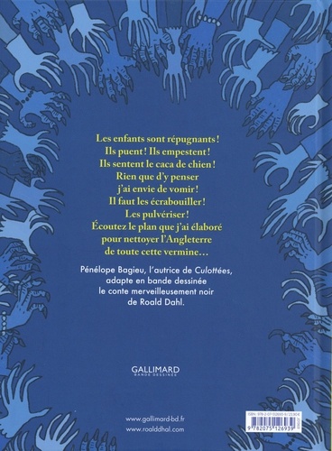 Les enfants sont répugnants ! Ils puent ! Ils empestent ! Ils sentent le caca de chien ! Rien que d'y penser, j'ai envie de vomir ! Il faut les écrabouiller ! Les pulvériser ! Ecoutez le plan que j'ai élaboré pour nettoyer l'Angleterre de toute cette vermine... Attention ! Les vraies sorcières sont habillées de façon ordinaire et ressemblent à n'importe qui. Mais elles ne sont pas ordinaires. Elles passent leur temps à dresser les plans les plus démoniaques et elles détestent les enfants. La Grandissime Sorcière compte bien les faire tous disparaître. Seuls un jeune garçon et son extravagante grand-mère semblent capables de l'en empêcher...