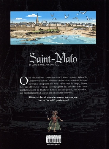 Ohé moussaillons, approchez-vous ! Venez écouter Robert le Corsato vous conter l'histoire de Saint-Malo ! Au cours de cette expérience exceptionnelle, vous remonterez le temps, fuyant face aux effroyables Vikings, accompagnant les corsaires dans leurs aventures au-delà du Pacifique. Résistez aux assiégeants, aux incendies, aux bombardements et assistez à la renaissance de la ville. Découvrez la cité malouine sous un nouveau jour dans ce Docu-BD passionnant !