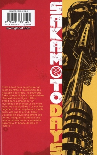 Prête à tout pour se procurer un ticket d'entrée à l'Exposition des Assassins du siècle, la supérette Sakamoto participe à des enchères clandestines en ligne. Hélas, c'était sans compter sur un mystérieux enchérisseur qui vient jouer les trouble-fêtes ! Le combat dégénère, et la température monte aussi vite que le prix du ticket... L'exposition ouvre finalement ses portes, marquant le début d'une lutte acharnée entre la supérette Sakamoto, ta bande de Slur et l'Ordre !