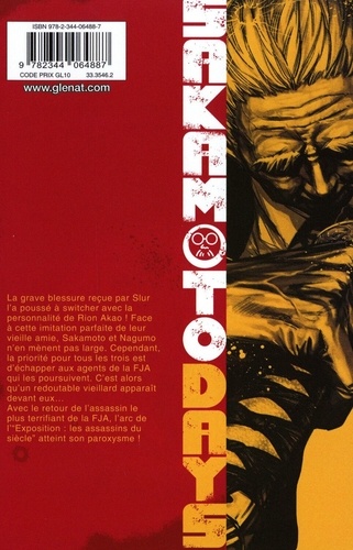 La grave blessure reçue par Slur l'a poussé à switcher avec la personnalité de Rion Akao ! Face à cette imitation parfaite de leur vieille amie, Sakamoto et Nagumo n'en mènent pas large. Cependant, la priorité pour tous les trois est d'échapper aux agents de la FJA qui les poursuivent. C'est alors qu'un redoutable vieillard apparaît devant eux... Avec le retour de l'assassin le plus terrifiant de la FJA, l'arc de l'"Exposition : les assassins du siècle" atteint son paroxysme !
