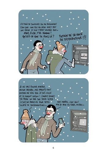 Pour élise et Seb, aventuriers fauchés à l'affût du moindre job, les portes battantes du monde du travail s'ouvrent et se referment aussitôt, juste le temps pour eux d'entrevoir ce qu'il s'y passe. Hôtesse de caisse, livreur de pizza, téléphone rose, patrons odieux, clients désagréables, toutes ces situations précaires ont été vécues, testées et désapprouvées par les auteurs.