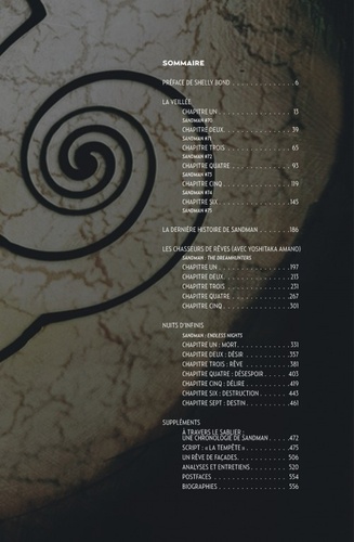 SANDMAN est l'oeuvre imaginée par Neil GAIMAN. Inspirée par le concept d'un personnage classique de l'univers de DC, la série débute en 1988 pour s'achever en 1996, après 75 numéros. Acclamé par la critique et les lecteurs dès sa publication, ce titre fondateur du label Vertigo est reconnu comme l'une des pièces majeures de notre culture contemporaine. Mêlant mythes modernes, dark fantasy, poésie et philosophie, Neil GAIMAN déploie toute l'étendue de ses talents de conteur pour bâtir un univers onirique inédit. (contient : Sandman #70-75 + Endless Nights + Sandman : The Dream Hunters par Yoshitaka Amano)