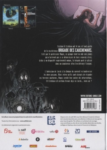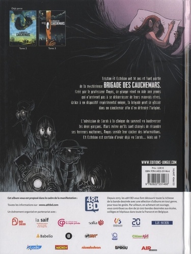 Tristan et Esteban ont 14 ans et font partie de la mystérieuse BRIGADE DES CAUCHEMARS. Créé par le professeur Angus, ce groupe vient en aide aux jeunes qui n'arrivent pas à se débarrasser de leurs mauvais rêves. Grâce à un dispositif expérimental unique, la brigade peut se glisser dans un cauchemar afin d'en détruire l'origine. L'admission de Sarah à la clinique du sommeil va bouleverser les deux garçons. Alors même qu'ils sont chargés de résoudre ses terreurs nocturnes, Angus semble leur cacher des informations. Et Esteban est certain d'avoir delà vu Sarah... mais où ?