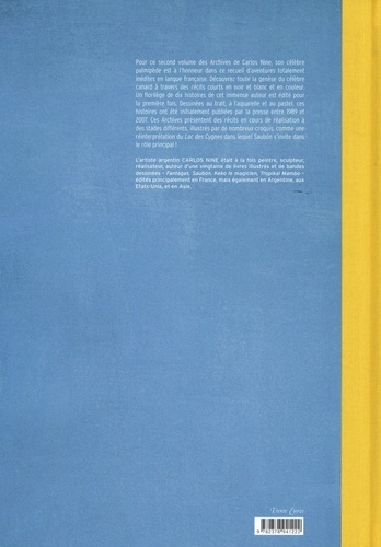 Un florilège d'histoires inédites de Saubón, de l'immense dessinateur argentin. Pour ce second volume des Archives de Carlos Nine, son célèbre canard Saubón est à l'honneur. Toutes les histoires présentées dans ce recueil sont totalement inédites en langue française. L'oeuf de Cu-Cu et Le Coiffeur de Saubón dessinées pour le magazine Fierro en Argentine, sont dessinées à l'aquarelle, et même à la pastel pour la seconde histoire. Ces Archives montrent pour la première fois des histoires en cours de réalisation à des stades différents, illustrées par de nombreux croquis et pages en noir & blanc et couleur. Saubón Sunday Pages, propose une variation d'histoires en deux couleurs. Enfin la masterpiece de ces Archives est une réinterprétation du Lac des Cygnes dans lequel Saubón s'invite dans le rôle principal, celui du cygne