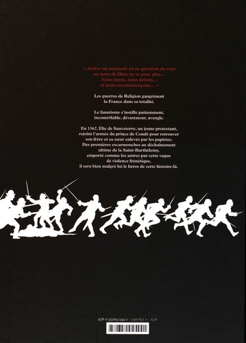 Les guerres de Religion gangrènent la France dans sa totalité. Le fanatisme s'instille patiemment, incontrôlable, dévastateur, aveugle. En 1562, Elie de Sauveterre, un jeune protestant, rejoint l'armée du prince de Condé pour retrouver son frère et sa sueur enlevés par les papistes. Des premières escarmouches au déchaînement ultime de la Saint-Barthélemy, emporté comme les autres par cette vague de violence frénétique, il sera bien malgré lui le héros de cette histoire-là.
